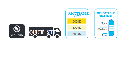 Lumen output may vary ± 5% base on different CCT and wattage. Actual wattage may vary ± 5%.