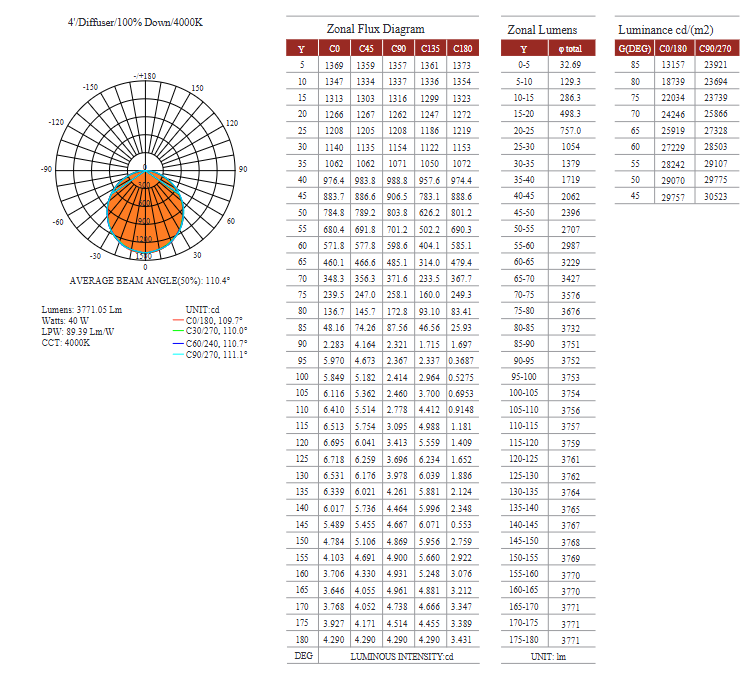 Remark: Lumens are subjuect to maximum wattage,4000K with white finish only.