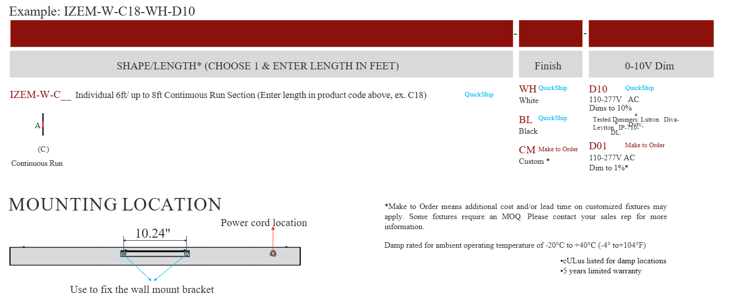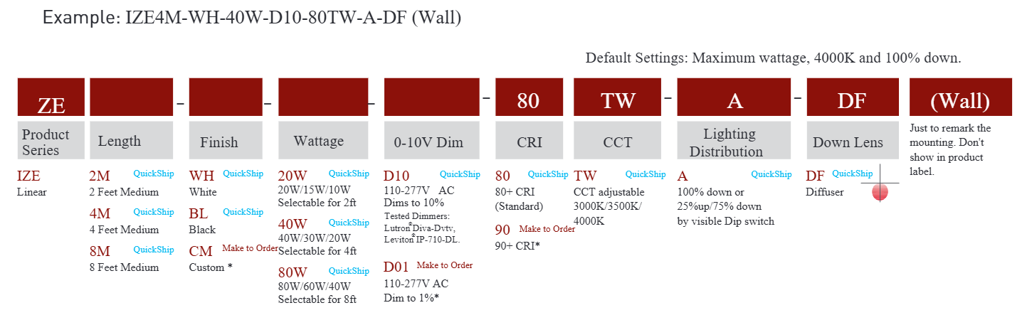 Contact UsFinish | Length | Wattage Selectable | Lumen (25% up / 75% down) | Lumen (100% down) | Efficacy | ||||