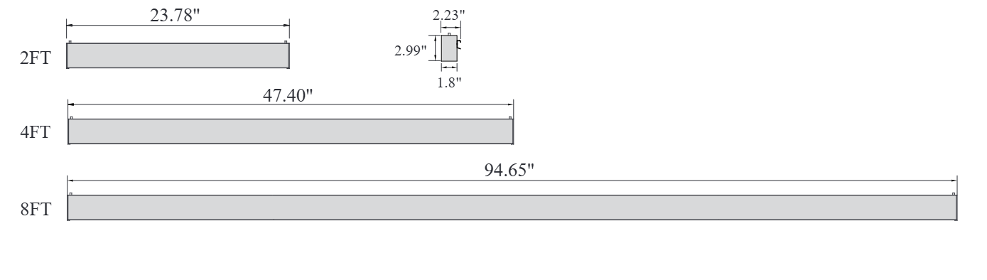 White | 2' | 20W/15W/10W | 1120~2240lm | 1220~2440lm | 1170~2340lm | 1050~2100lm | 1150~2300lm | 1100~2200lm | 580~1170 lm/ft |