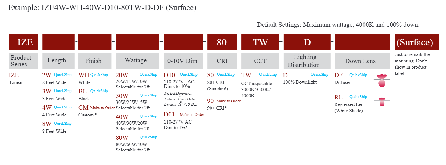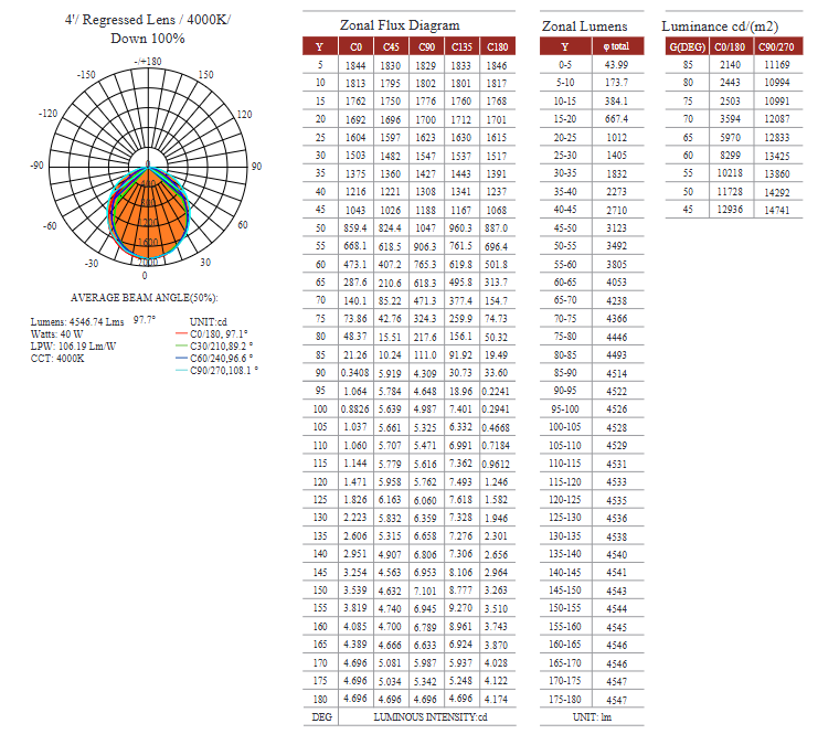 Remark: Lumens are subjuect to maximum wattage,4000K with white finish only.