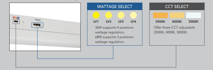 Illuminating US IMLF03 series is one type of strip light that is lightweight and versatile. The meticulously designed optical system can effectively reduce glare and provide comfortable lighting effect. The installation is easy and convenient, and supports Continuous Row Mount. IMLF03 includes a total of seven power level adjustment options ranging from 20 to 68W; CCT supports three adjustable color temperatures of 3500K, 4000K and 5000K. Both options are operated with simple switches, which will greatly reduce the customer's SKU and be budget-friendly.
