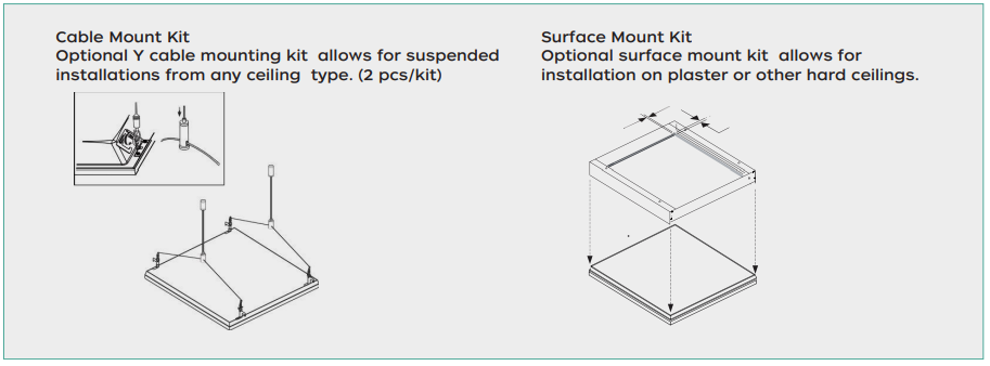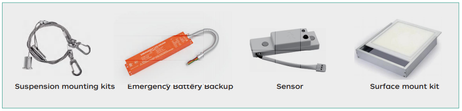 Fixture is suitable for recessed mounting with T-bar, and accessories for suspension and surface mounting are also available. Use in ambient temperatures ranging from -20°C to 45°C