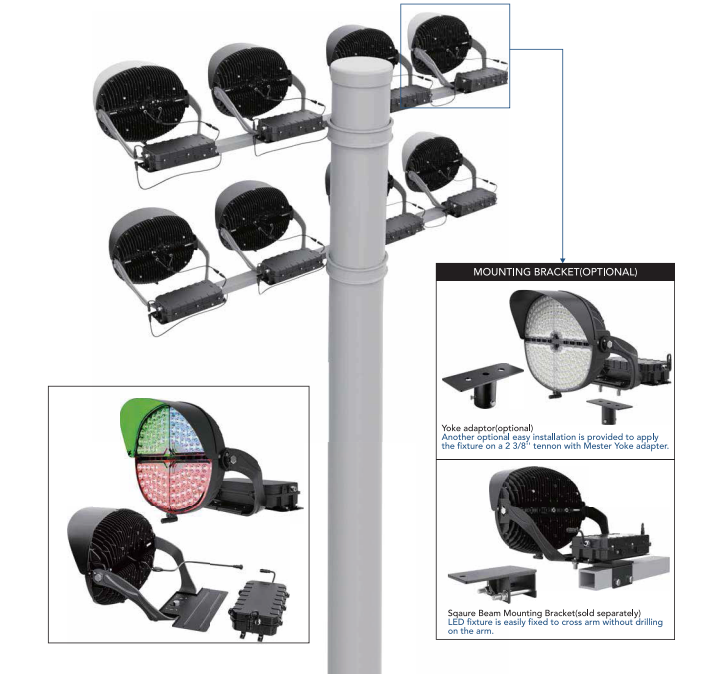 The fixture with separate power can be installed on the top of the light pole as a whole unit, which is simple and fast way, without additional labor costs to install the driver. It is also beneficial to reduce the power consumption of fixtures caused by remote wiring, save energy and improve efficiency.