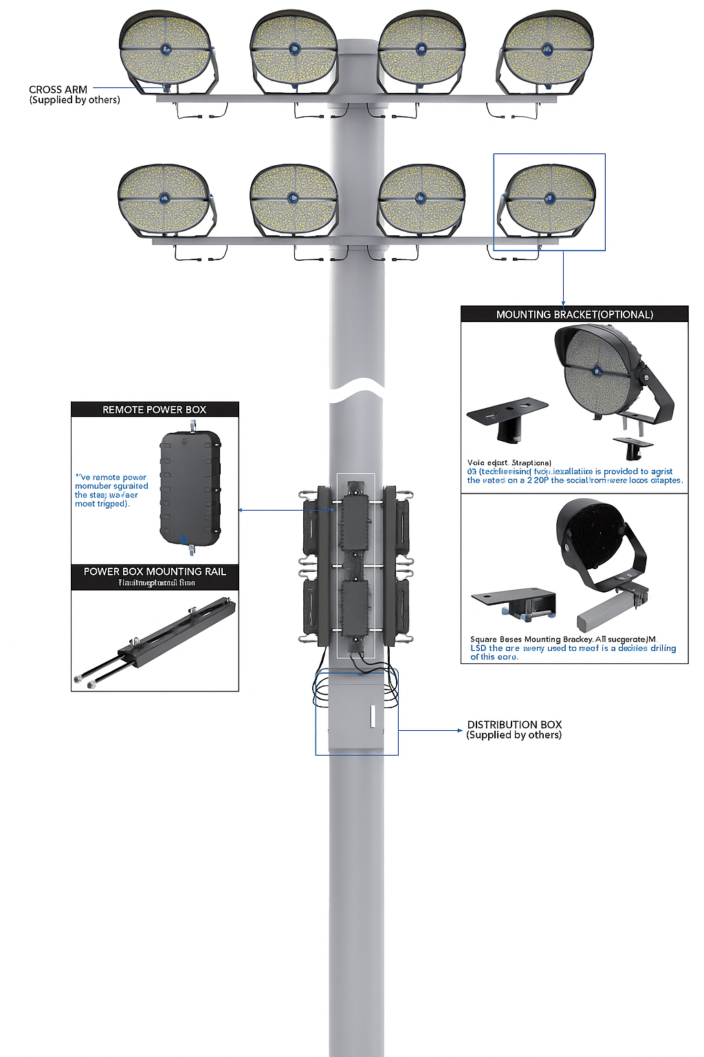 The fixture with separate power can be installed on the top of the light pole as a whole unit, which is simple and fast way, without additional labor costs to install the driver. It is also beneficial to reduce the power consumption of fixtures caused by remote wiring, save energy and improve efficiency.