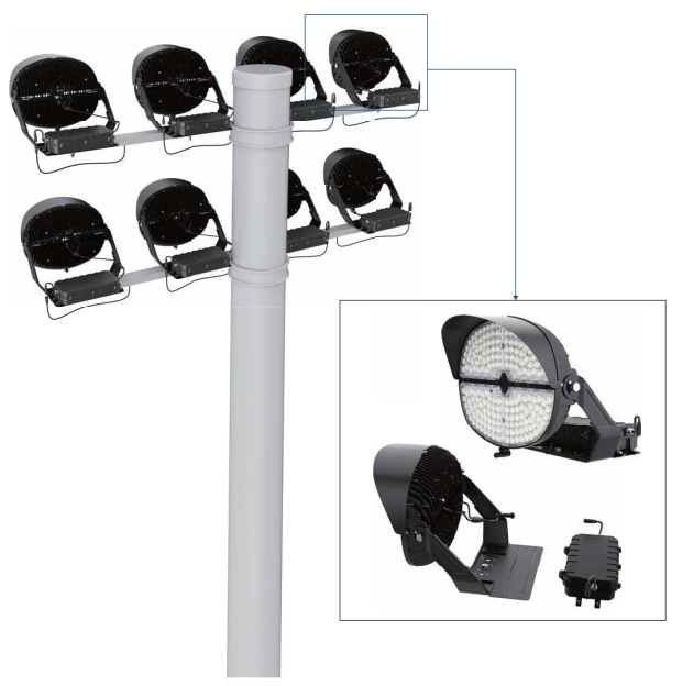 The MSL03 series is a powerful stadium light designed with Remote Power System. This Remote Power System not only makes the fixture easy to install, greatly improves the flexibility of on-site installation, but also simplifies the driver maintenance operation steps to the greatest extent, eliminating the cost to take the bucket or crane basket equipment for maintenance. Precision engineered optics provide excellent high output and high efficiency, making them ideal solutions for municipal, school and semi-professional outdoor sports lighting.