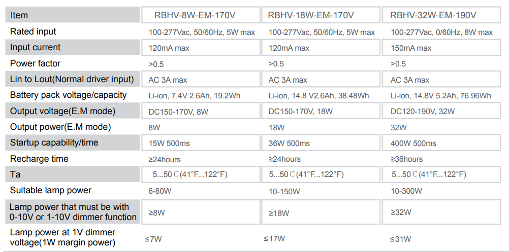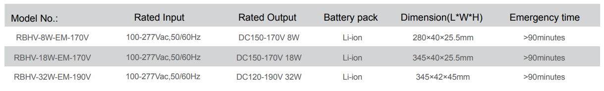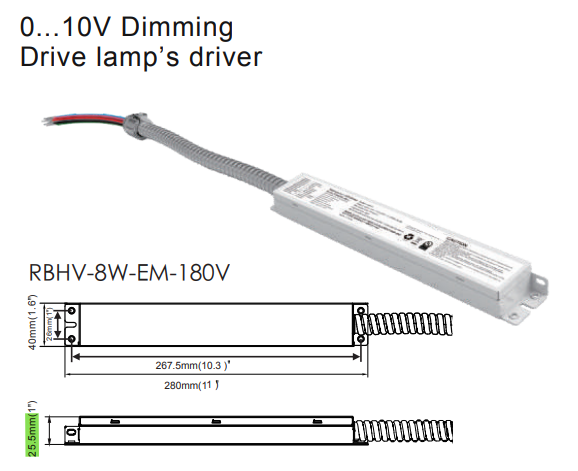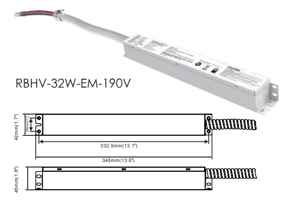 The Run Bison (RBHV Series) LED Emergency Driver is a rechargeable battery backup solution designed for commercial and industrial lighting fixtures, specifically engineered to work with strip lights, high bay lights, and troffer lights. These drivers are designed to provide uninterrupted illumination during power outages.