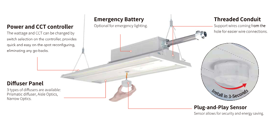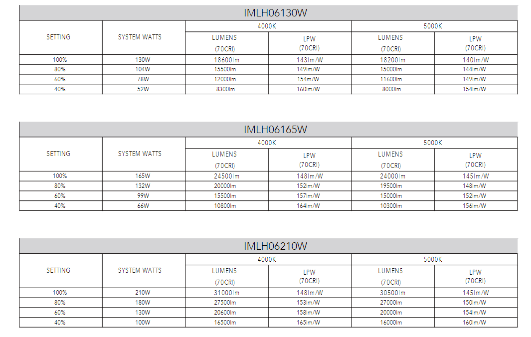 The IMLH06 series is a simple linear design of fixture, showing high energy efficiency and high performance on a low budget. Compared to traditional light sources, it can save more than 60 percent of energy costs and significantly improve lighting performance. The perfect combination of optics and design makes it a fixture that is both beautiful and practical. It also comes with a colored temperature adjustment function that allows it to capture the unique atmosphere of the scene, and an excellent thermal management system effectively extends the service life of the fixture, making it ideal for warehousing, large indoor spaces, retail and commercial applications.