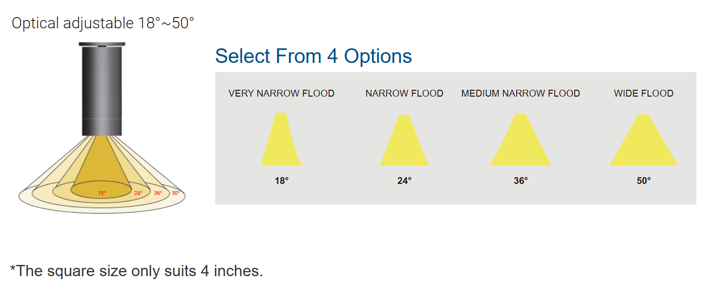 By changing different optical lenses, the Cylinder Light can achieve various lighting effects.