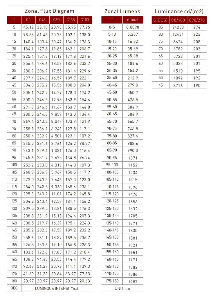 | LED | Minimum 50,000h with 87.8% of lumen maintenance in 25°C ambient temperature, in compliance with IES LM-80 testing measurements. |