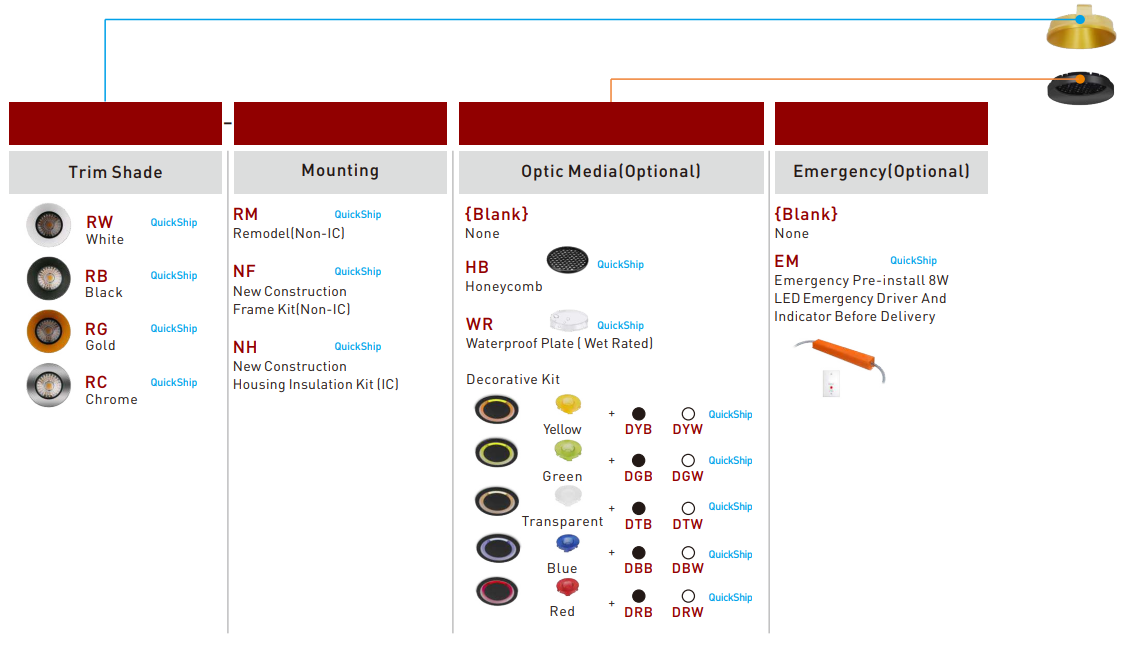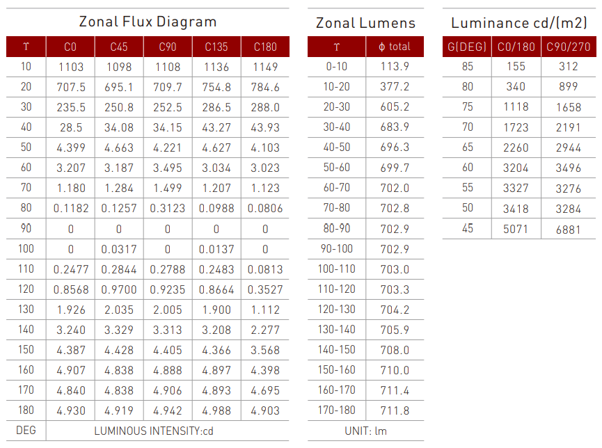 Remark: The lumens are subject to 3000K, 90+ CRI, 36° beam angle with white round trim. Lumen output may vary ± 5% base on different CCT, beam angle, trim shape and shade.