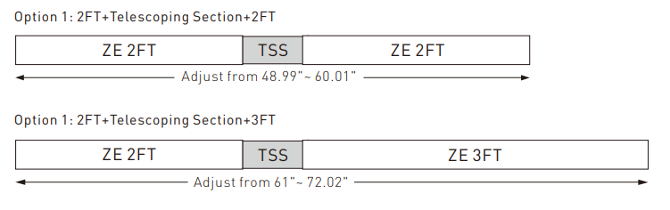 Telescoping Section must be installed between two fixtures. It comes pre-assembled with its two adjacent fixtures before delivery normally for easy installation.