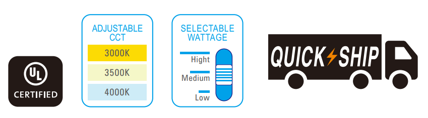 Lumen output may vary ± 5% base on different CCT and wattage. Actual wattage may vary ± 5%.